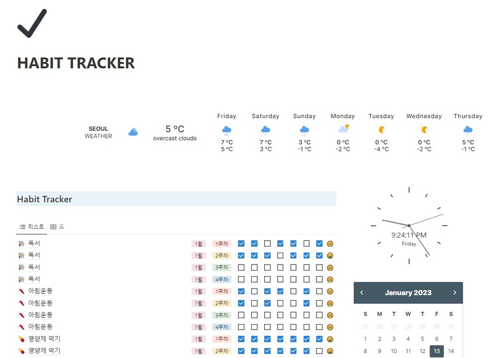 이번 템플릿은 정말 기본에 충실한 minimal habit tracker를 컨셉으로 작성했습니다.